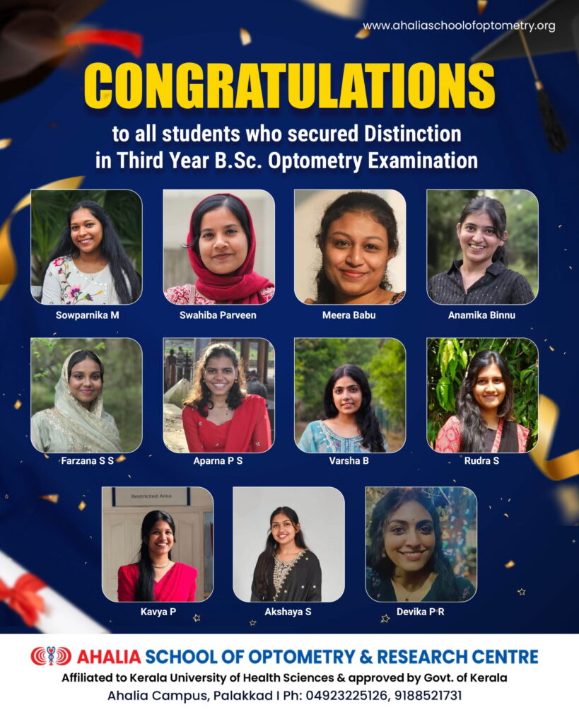CONGRATULATIONS Congratulations to all students who secured distinction in Third year B.Sc. Optometry examination By Admin December 31, 2025 News