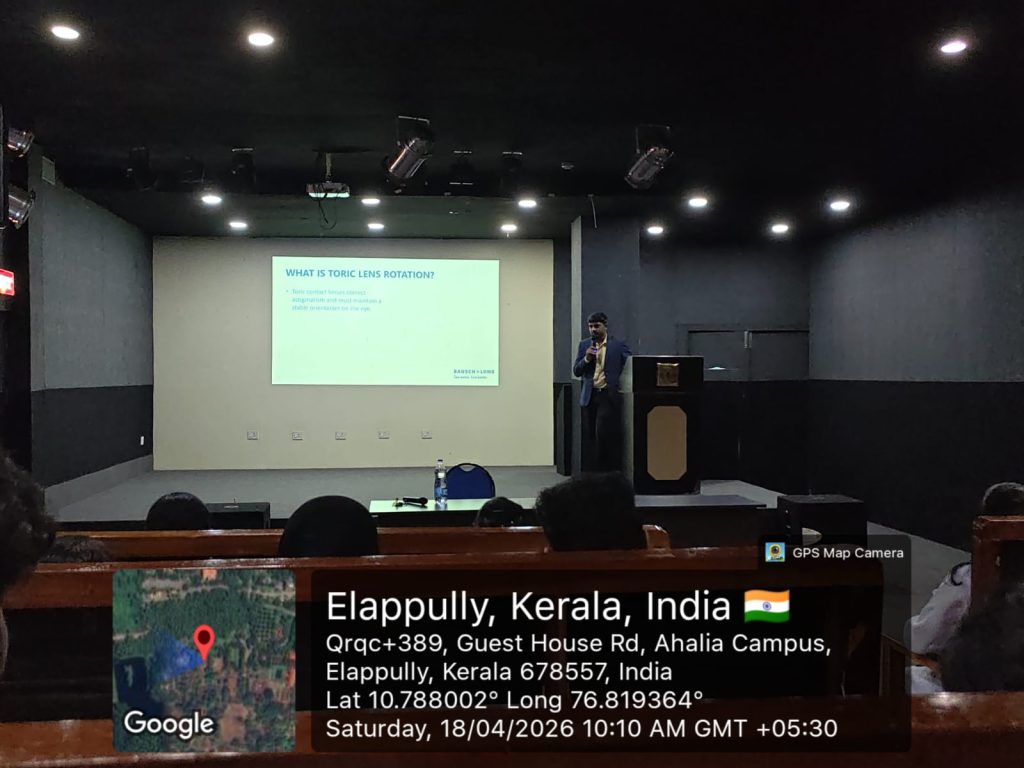 A contact lens training program was held on 18th April 2026 at 10:00 AM in the AFEH Auditorium. The session was conducted by Mr. Ramachandran, Business Development Trainer from Bausch & Lomb Company. He shared insights on recent innovations in contact lens materials and modalities, along with the Ultra range of products. The session also covered proper fitting techniques and best practices for contact lens application.