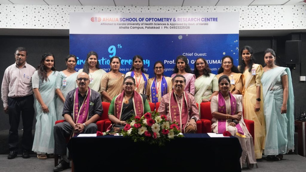 Ahalia School of Optometry and Research Centre conducted 9 th graduation on 18th December 2025.  The graduation ceremony was a celebration of the students hard work, dedication, and commitment to the field of optometry. It was a proud moment for the graduates, their families, and the faculty members who have guided them throughout their academic journey.