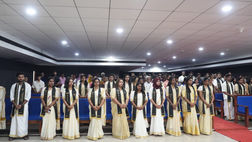 Graduation Day ceremony began with a grand procession by the dignitaries and the graduands. The invocation was performed by the students, After that, Mrs. Lathika R, Associate Professor, delivered the welcome speech.